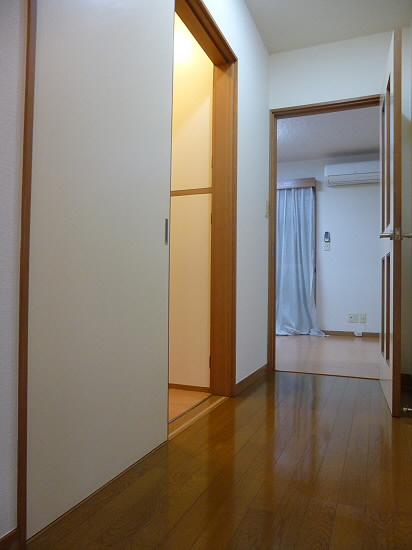DKにエアコン・収納スペースがあります。