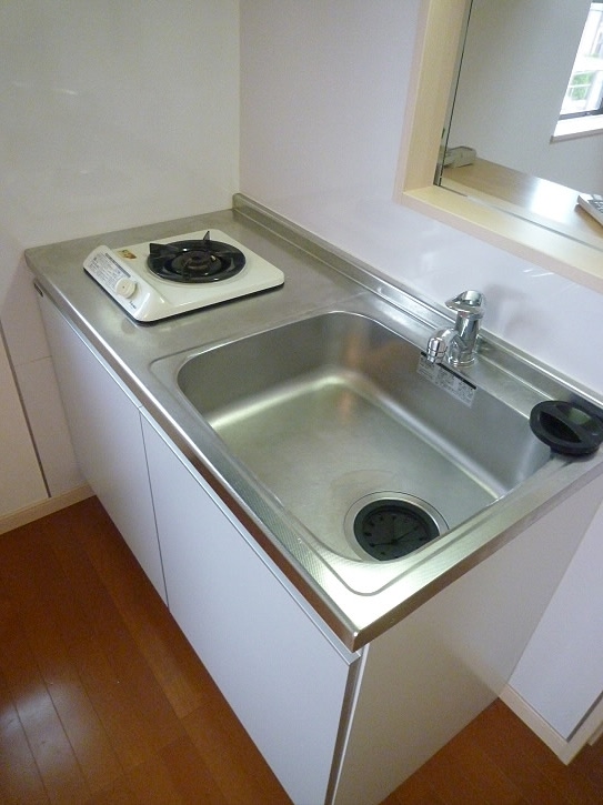 キッチンはコンパクトですが、まな板を置くスペースもございますので、お料理も作り易いです♪